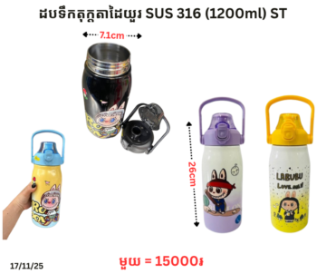 ដបទឹកតុក្តតាដៃយួរ SUS 316 (1200ml) ST