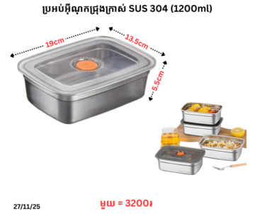 ប្រអប់អ៊ីណុកជ្រុងក្រាស់ SUS 304 (1200ml)
