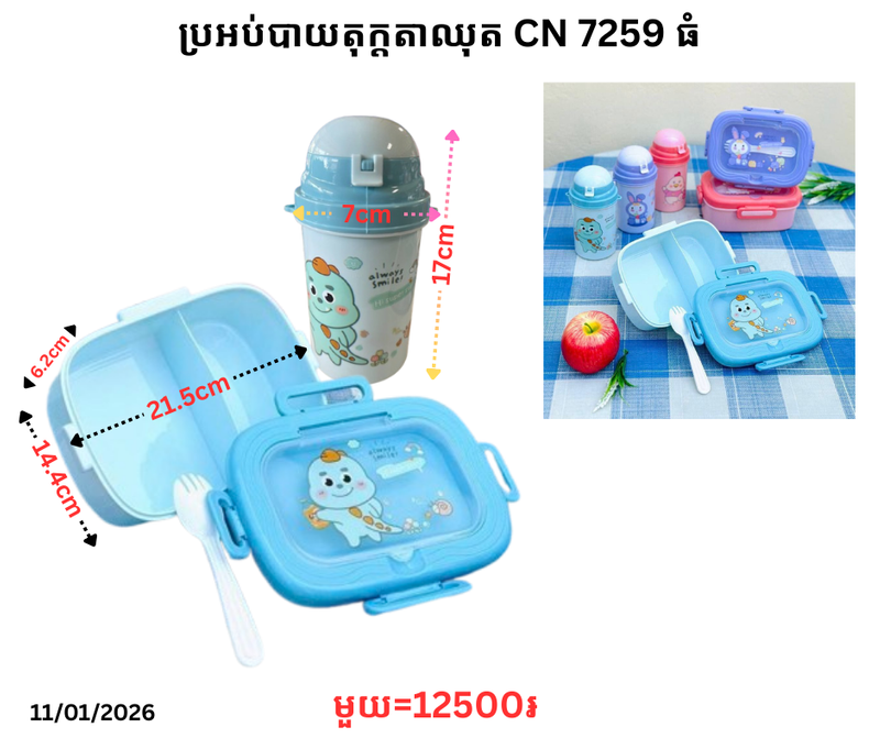 ប្រអប់បាយតុក្តតាឈុត CN 7259 ធំ November 15, 2025 Posted in 12500, ទំនិញថ្មី, ប្រអប់បាយ, ប្រអប់បាយតុក្តតា, ប្រអប់បាយតុក្តតាឈុត