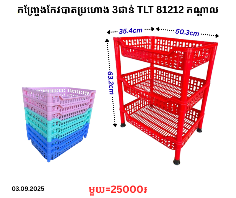 កញ្ច្រែងកែវបាតប្រហោង 3ជាន់ TLT 81212-3 កណ្ដាល